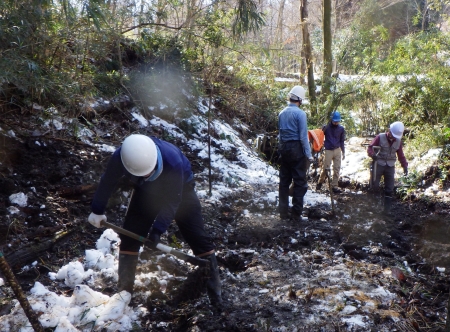 @八王子館町緑地保全地域湿地の掘り込み、泥上げ、湿地周縁の水路の形成