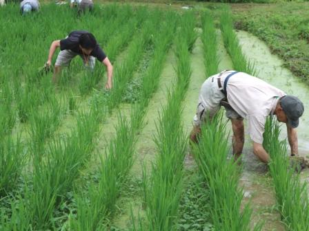 初夏に田植えをした田んぼは、稲がすくすく育つ横で雑草もまた育ってきます。
