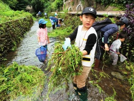 オオカワヂシャはお子さんでも簡単に引き抜くことができ、湧水での水遊びもできるので親子での参加もおすすめです♪